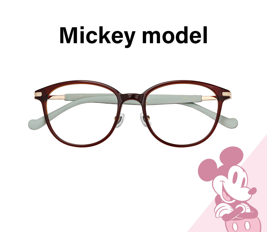 將米奇和米妮的圖案低調地融入眼鏡設計當中,是細節中帶可愛的日常款式。