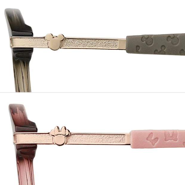 鏡腿使用橡膠材質,減少眼鏡移位的情況。外側藏有米奇頭圖案和米妮的蝴蝶結,非常可愛。