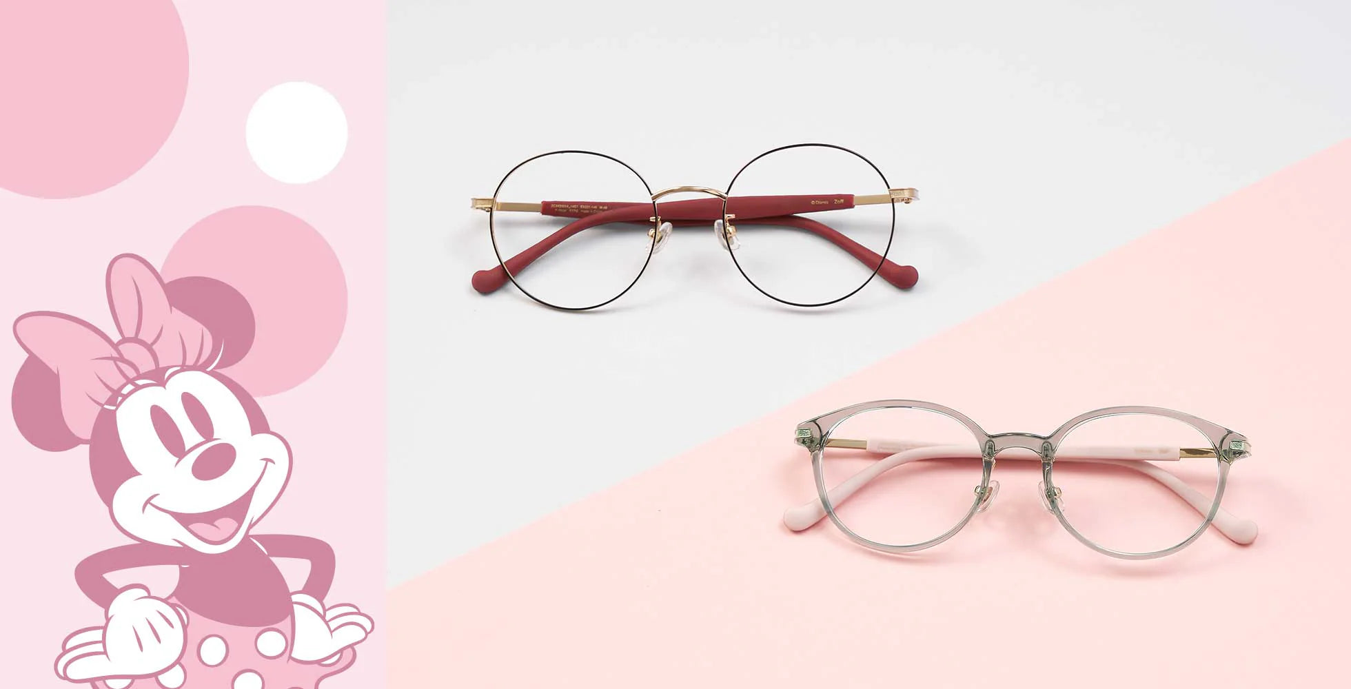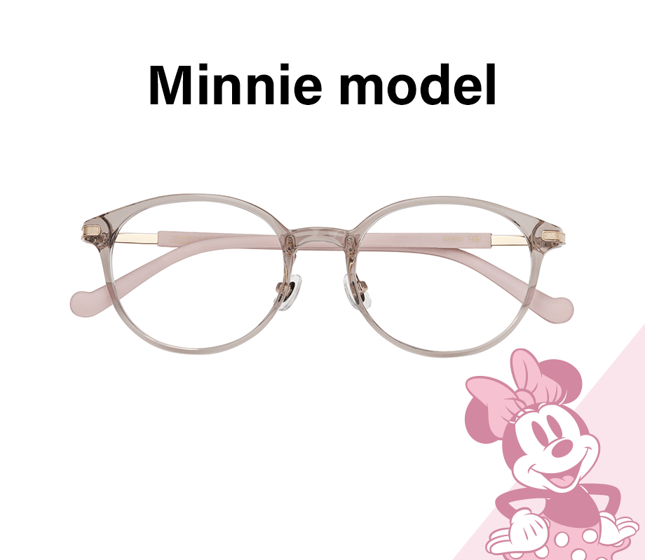 粉彩色調和米妮的蝴蝶結成為完美可愛的組合,帶有柔美曲線的前框設計非常適合女性配戴。