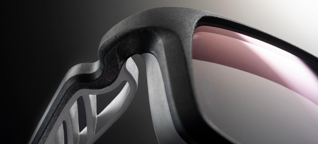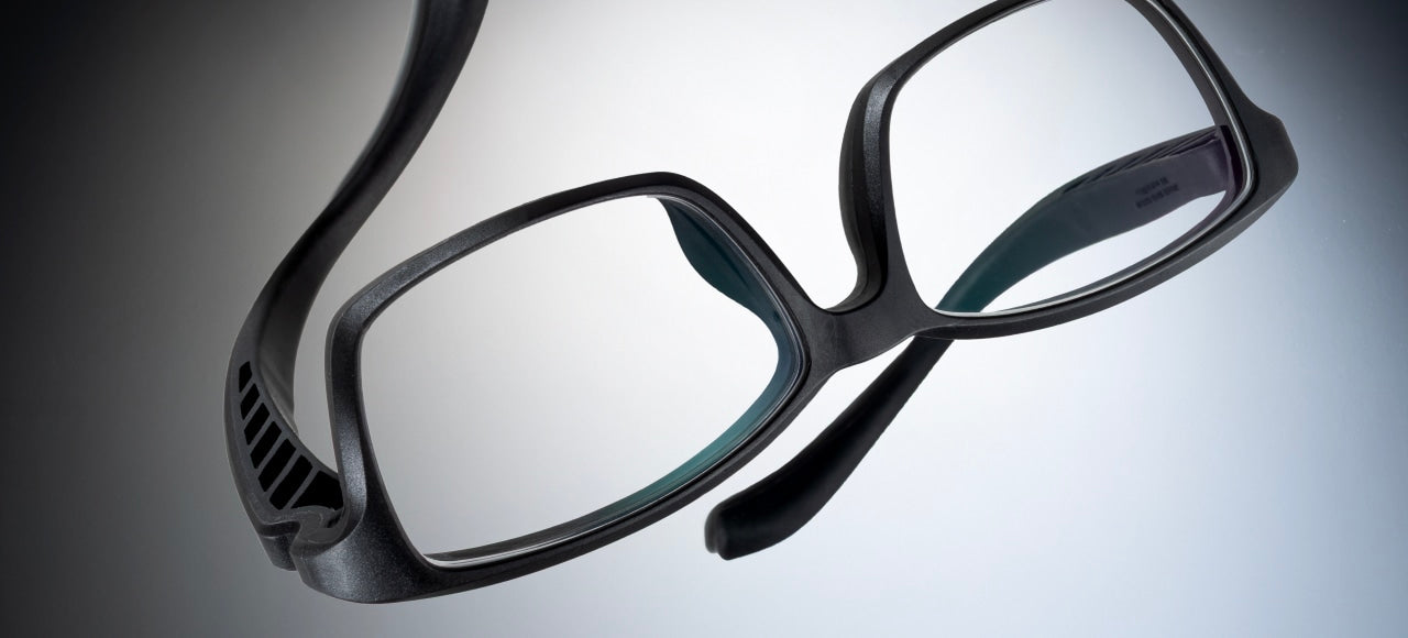 除了鏡片,全副眼鏡均以橡膠製成的「可屈曲眼鏡」。