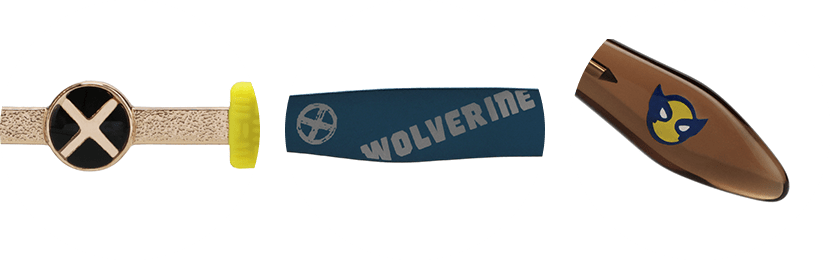 在日常易襯的眼鏡設計中巧妙融入讓人聯想到死侍和狼人的配色與圖案。除了眼鏡之外,