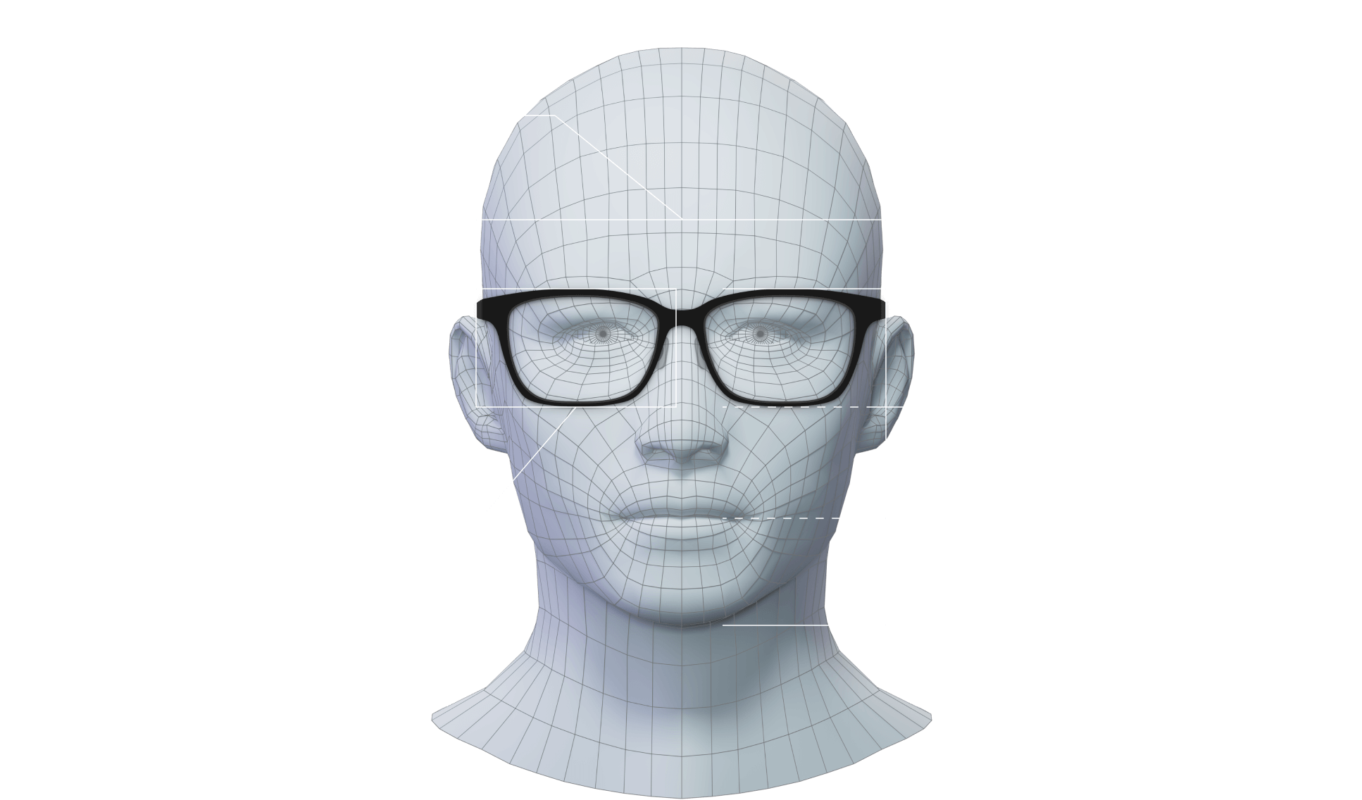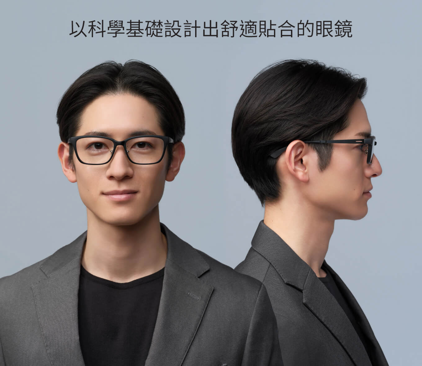 以30多歲日本男士※平均臉型資料為基礎, 運用AI技術設計出極致舒適感的眼鏡。 ※從約 2,000 張臉部影像中篩選出 30 多歲日本男性臉型資料。