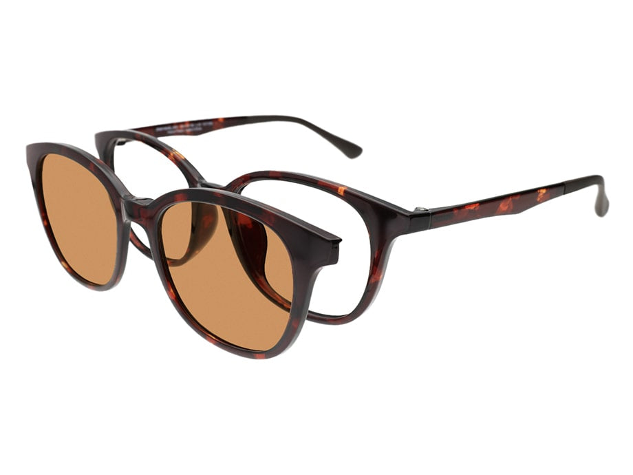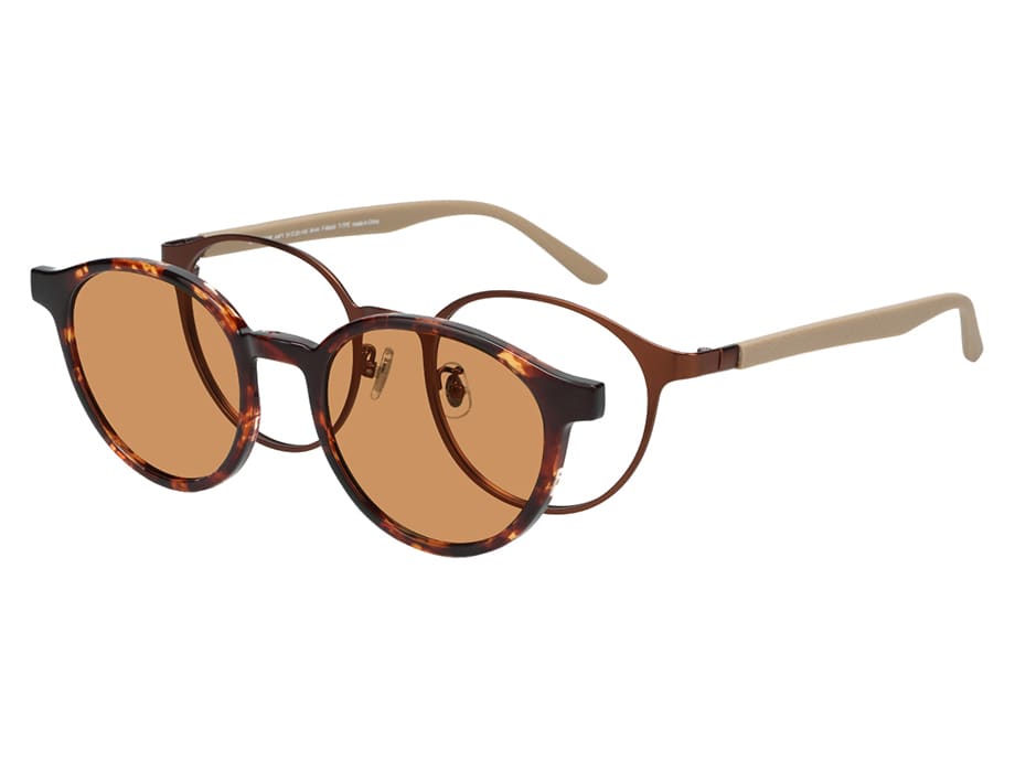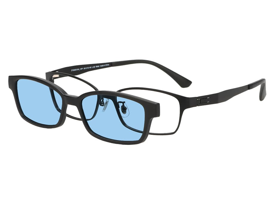 正面磁鐵貼片的內側附有2塊磁鐵,可從鏡框上方輕易裝卸。另外,鼻樑內側裝有鉤狀部件以避免脫落,貼片上方亦設有護罩以減緩由縫隙射入的眩光。※ZY202G04、ZY202G05、ZY202G06、ZY202G07、ZN211G03、ZY212G08的構造有所不同。