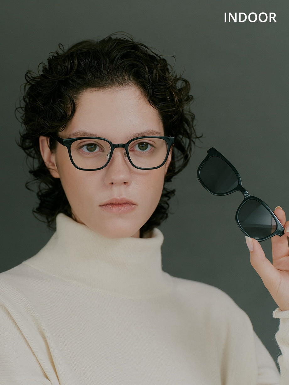 享受眼鏡與太陽眼鏡的 2WAY「NIGHT & DAY」,正因為具備如此多功能,我們在鏡框厚度與鏡片色調上反覆推敲,確保整體不會顯得過於厚重。 太陽眼鏡部分特別講究鏡片色彩與整體尺寸,不會過度搶戲,又能自然提升造型的完成度。 鏡框以方形為基礎,透過調整上下線條的弧度與粗細,避免設計過於單調,易於配戴,升級造型。