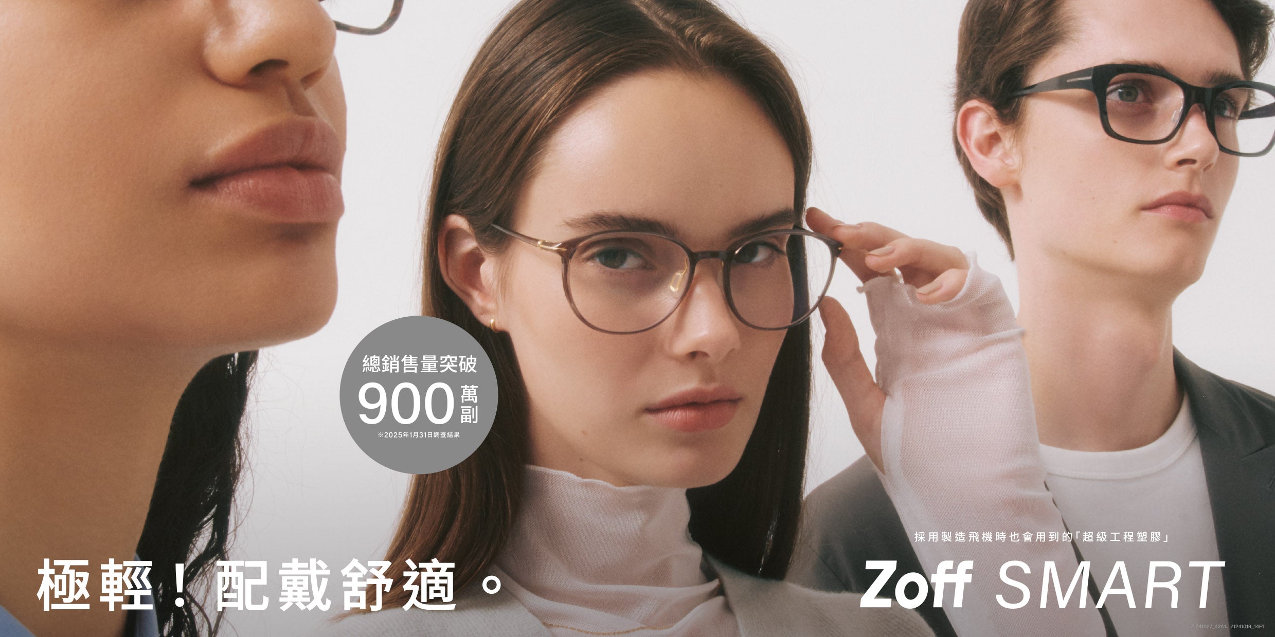 Zoff SMART 是Zoff的皇牌眼鏡產品, 總銷售量突破900萬副*1。最輕的型號只有約6.8克*2,非常輕巧而且不易損壞。採用製造飛機時也會用到的「超級工程塑膠」,打造出最理想的Zoff SMART眼鏡。歡迎你進入Zoff SMART的世界,體驗前所未有的舒適感。