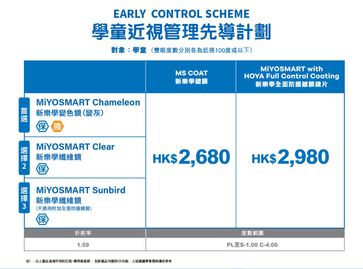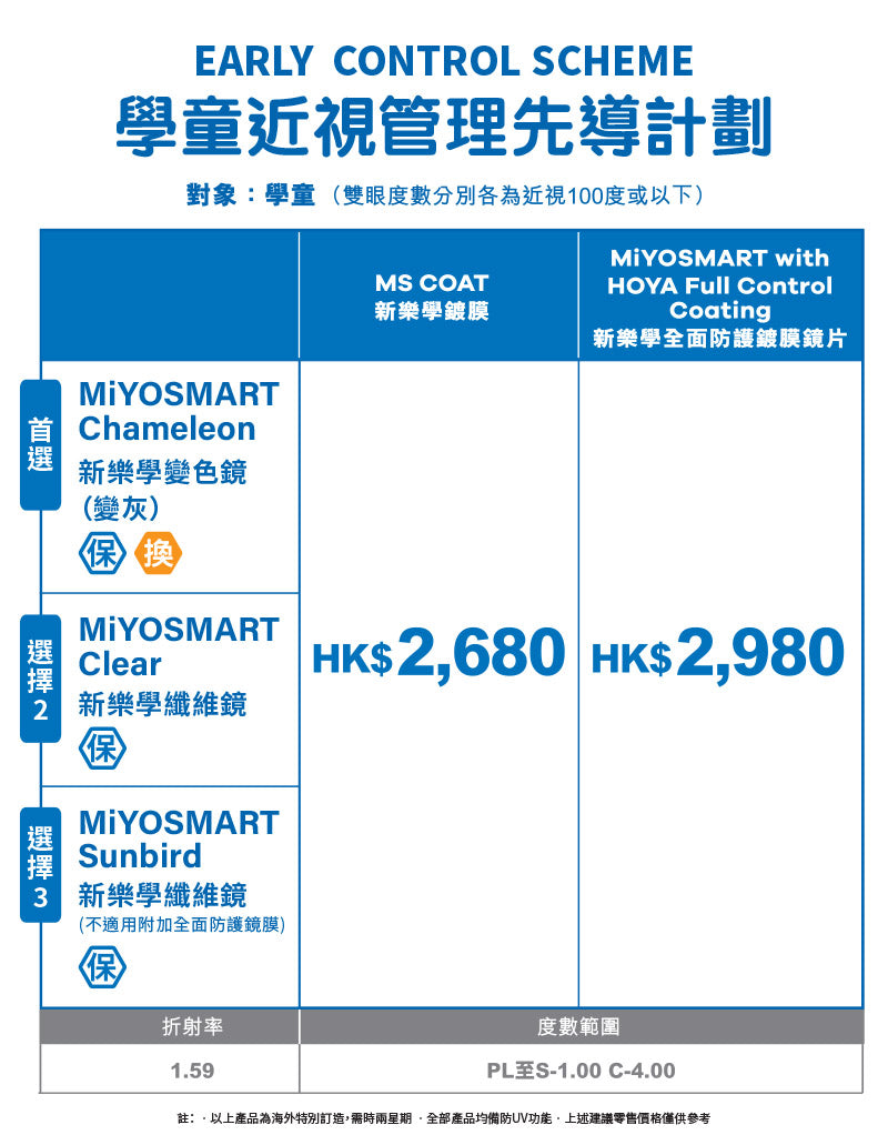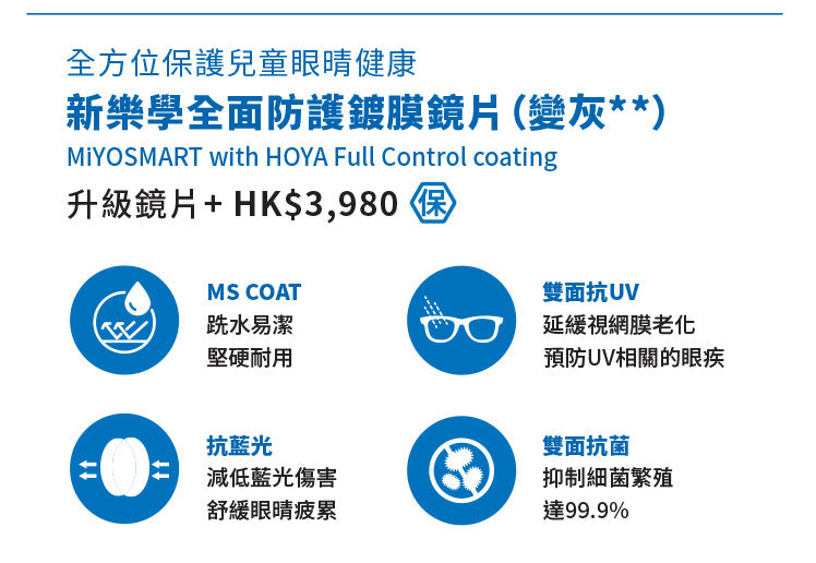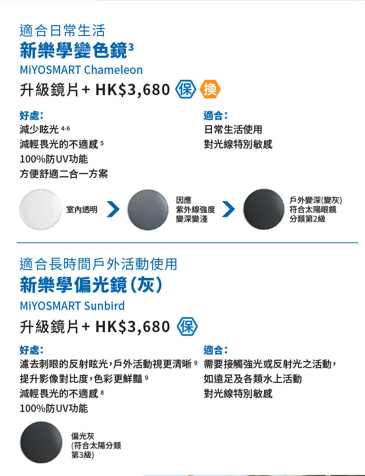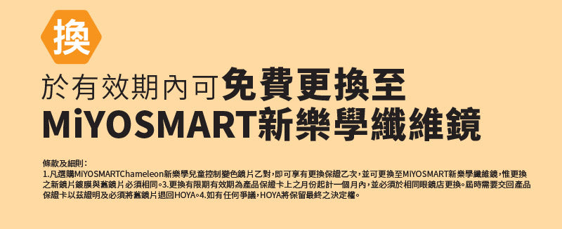 3. MiYOSMART Chameleon spectable lenses adopt a Patented Molded Laminate Photochromic Film Technologo to preserve optical performance of D.I.M.S. Technology* Reference *Patented in the United States (US9163108, US9981452, US11181666, US11427754, US11460716, US11560500)