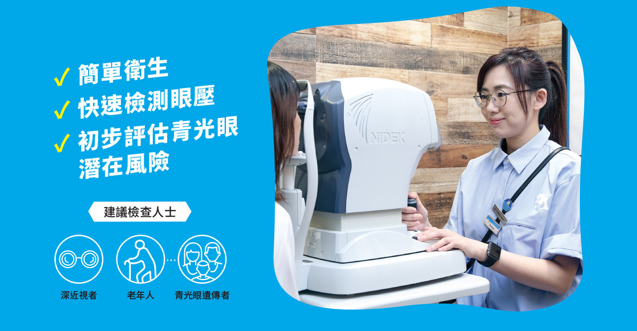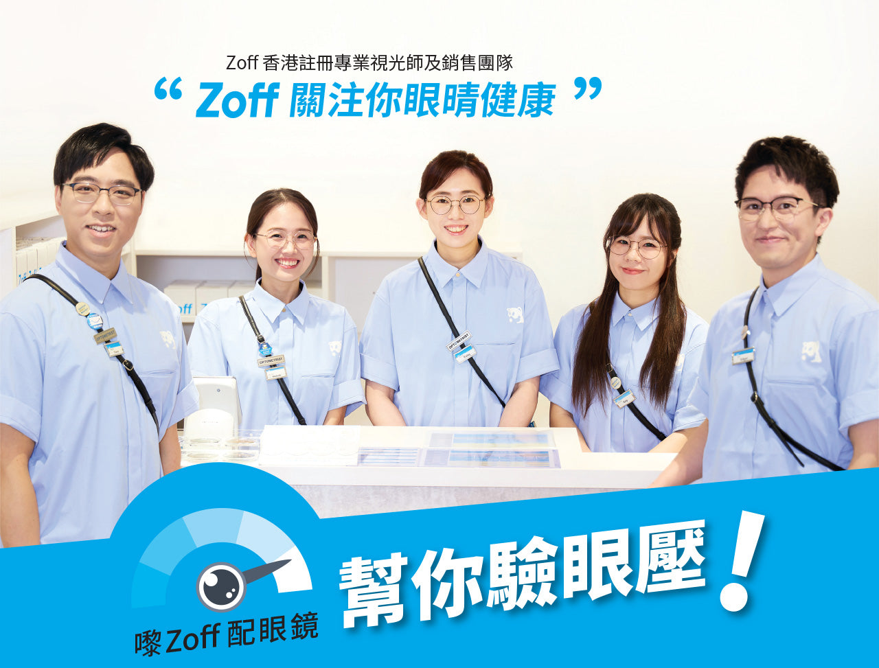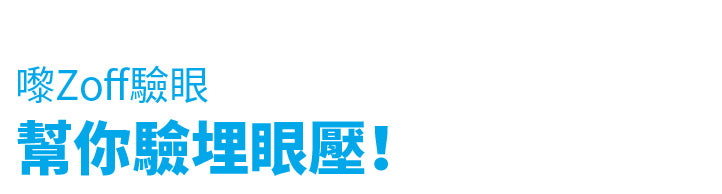眼壓可以眼壓機作初步檢查,Zoff設有日本品質的眼壓機,驗眼壓時有一股氣流輕輕吹向眼球表面,可以測量眼球在氣流下的變形程度,從而檢測出眼壓數字。過程快捷、衛生,亦可減少不適。